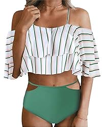 Features: High cut with stunning color design takes the bathing suits to next level, very creative. Wearing crop top on the shoulders with a maxi skirt or dress creates a square neck, super flattering. Cute hollow out print, retro high waist polka dot & classy high rise stripe show off your curvys, modest yet modish. Details